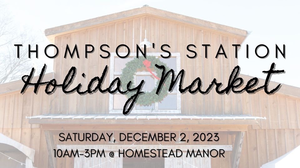 Holiday Market featuring local artisans, crafters, small businesses and more! Set up on the front lawn of Homestead Manor in Thompson’s Station, TN.