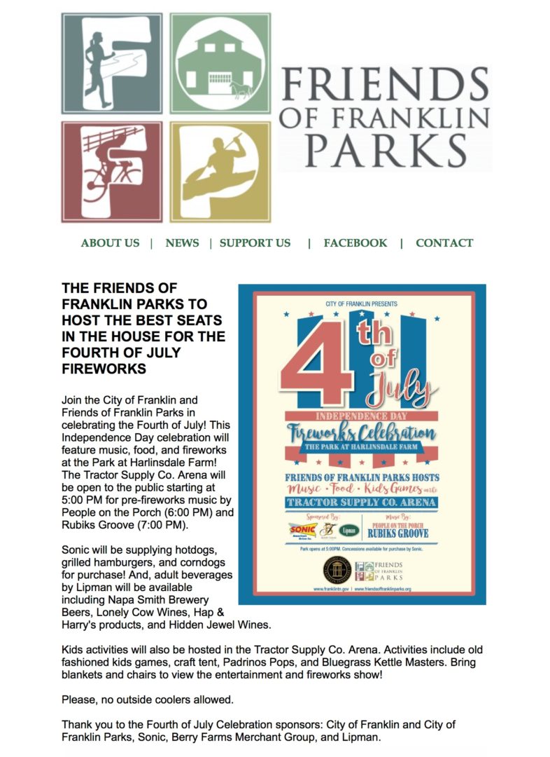 THE CITY OF FRANKLIN'S FOURTH OF JULY FIREWORKS 4th of July Celebration in Franklin at Harlinsdale - TSC Arena sponsored […]