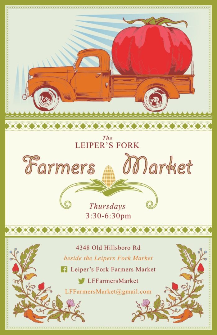 Visit the Leiper's Fork Farmers Market, celebrating the land and its blessings, every 4th Thursday of the month from 3:30 […]
