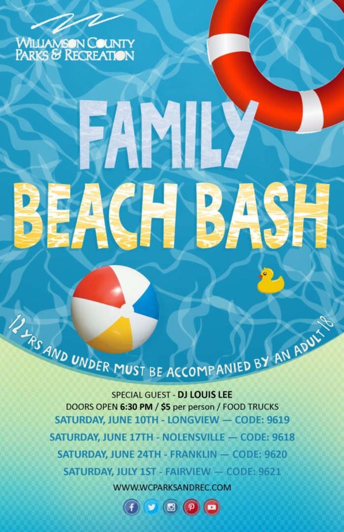 Williamson County Parks and Recreation - Family Beach Bash Longview: Saturday, June 10, 2017 Nolensville:Saturday, June 17, 2017 Franklin: Saturday, […]