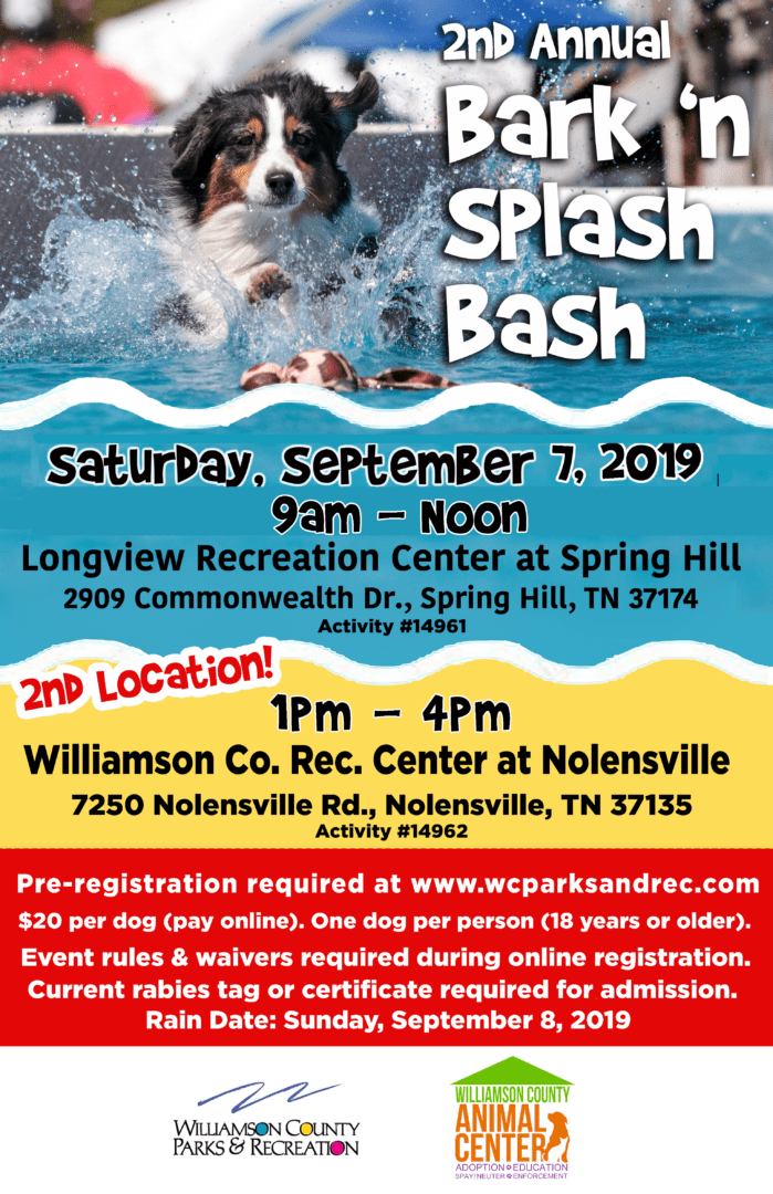 Longview Recreation Center at Spring Hill 2909 Commonwealth Drive, Spring HIll, TN, United StatesThe Williamson County Parks and Recreation Department (WCPR) will partner with the Williamson County Animal Center to host the Fourth […]
