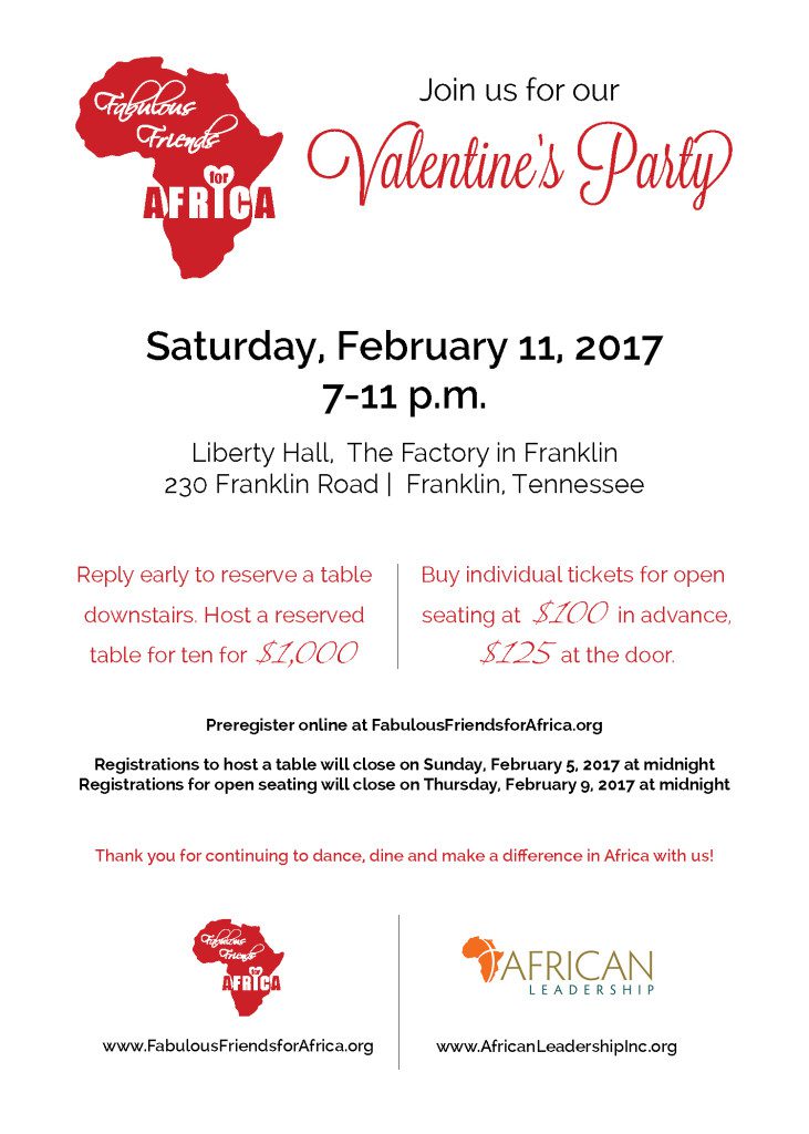 Fabulous Friends for Africa Valentine's Party - Saturday, February 11, from 7 to 11 p.m. - Liberty Hall, The Factory at Franklin […]