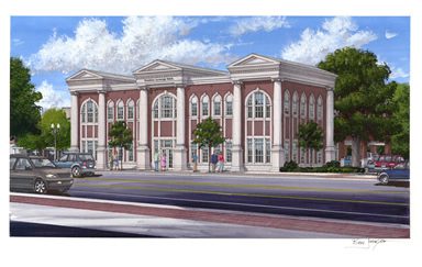 The new building has a hint of Greek Rival and Southern architecture. It will fit in nicely with the other historic buildings and appear as though it has been there for years.