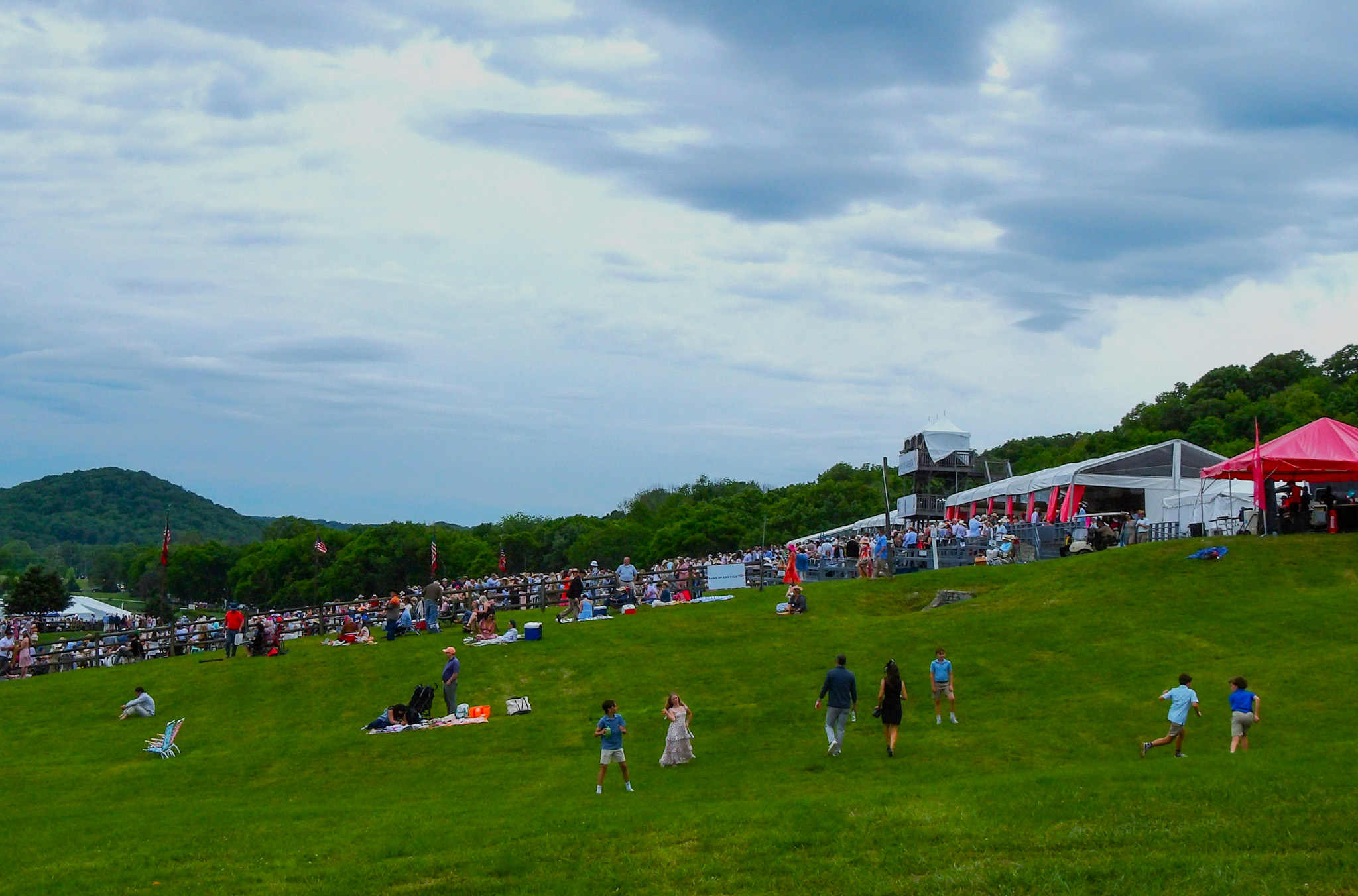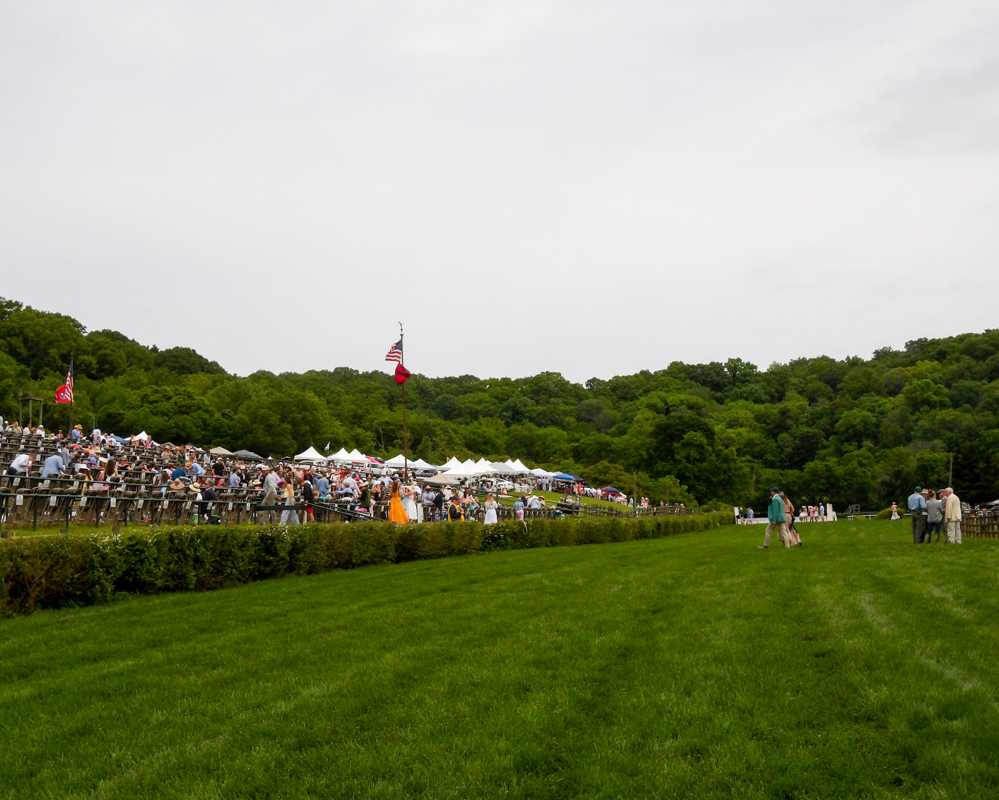 Despite the unpredictability of May in Tennessee, this year’s steeplechase event had fantastic weather; temperatures remained fairly cool—upper 60s to lower 70s—with overcast skies. The pleasant, gray day was punctuated by pastel colors, floral hats, and the sound of trumpets and bells, announcing the arrival of the horses and their jockeys for each race. Alongside fan-favorite traditions and new additions to the grounds, the 2025 event expanded its raceday schedule, adding an exciting 7th race to its typical line-up.