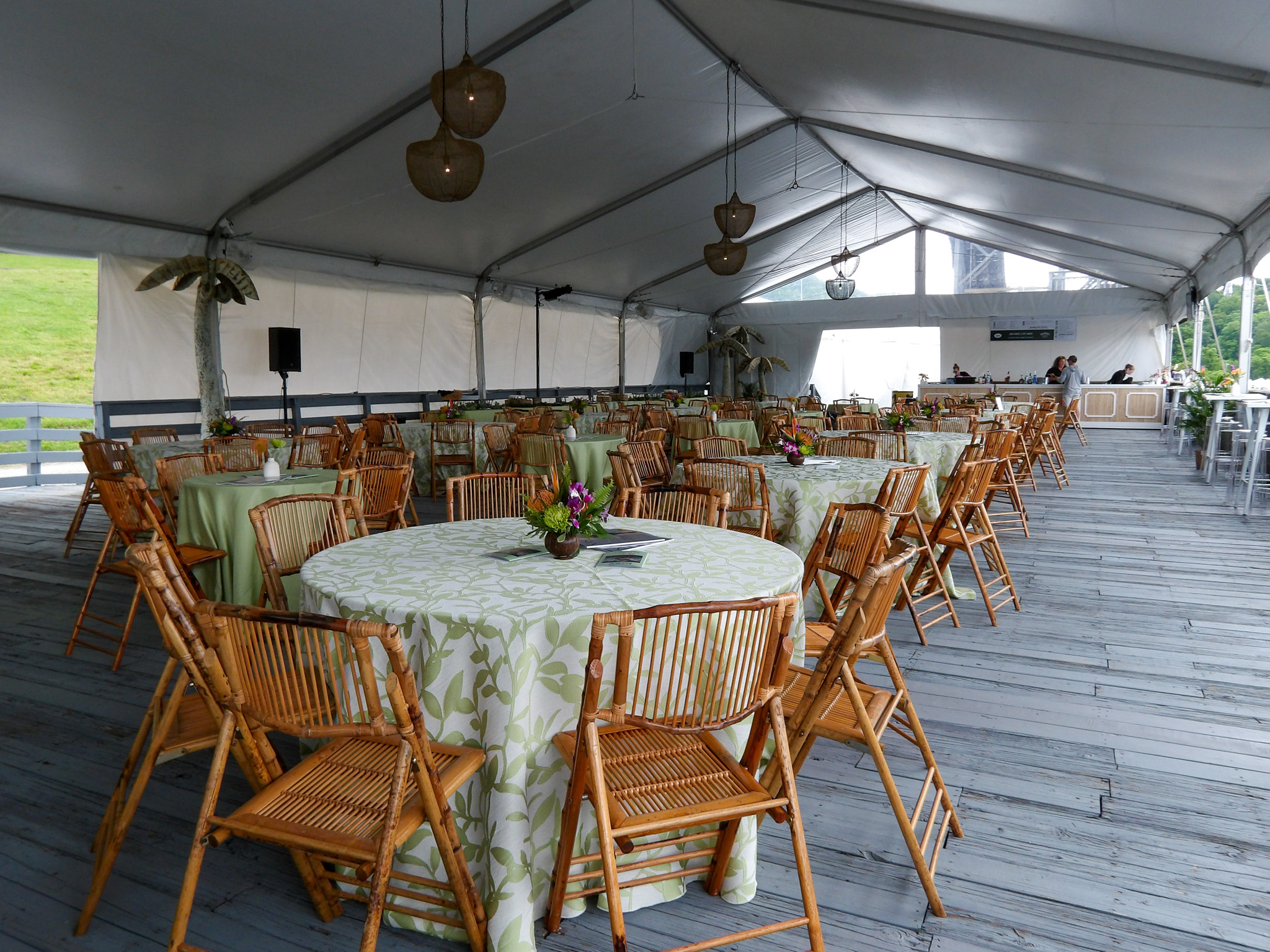 Private Hospitality Tents:The Hillside Tent package includes a tent, tables, chairs, fencing, linens, and race programs for groups of 50 ($11,440) or 80 ($15,444). Catering and bartending services are not provided, though suggestions are available. This tent has a finish line view. The Railside Tent package includes a tent, tables, chairs, fencing, linens, and race programs and catering purchase options for groups of 30 ($4,160), 65 ($8,944), or 100 ($13,754). Additional armbands are available for purchase within the tents.