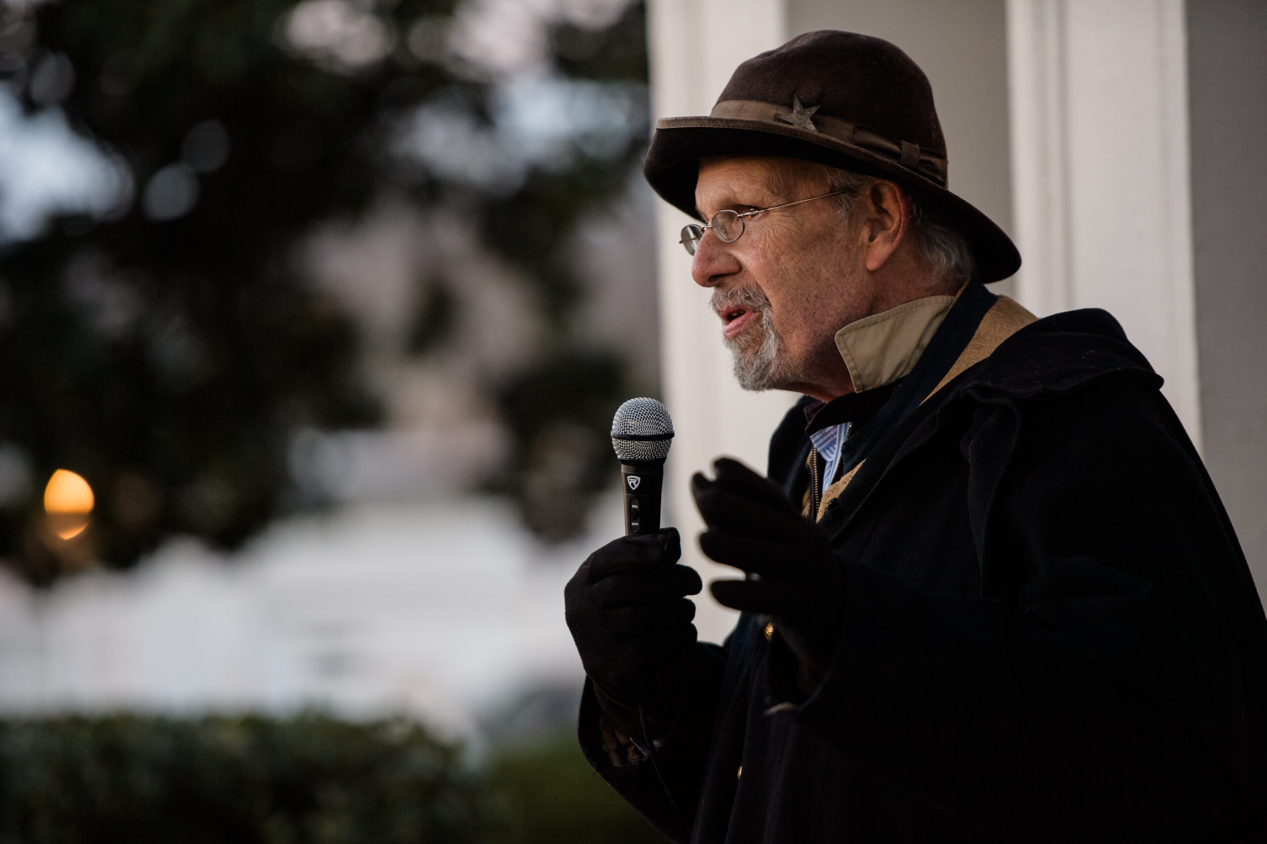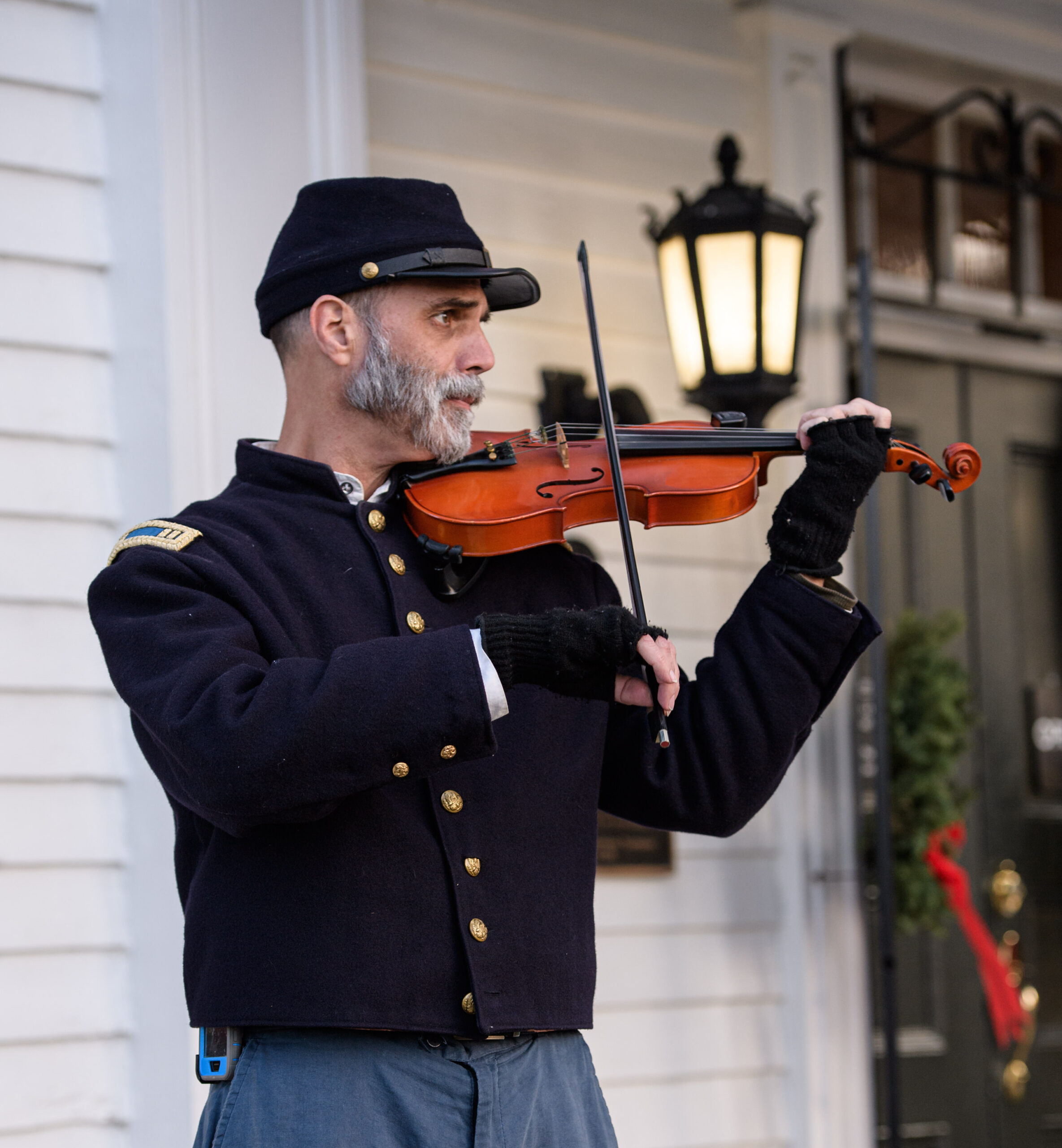 A crowd gathered to participate with luminaries, enjoy the violin performance by Cody Engdahl, a tribute vocal performance by reenactor Bill Radcliff and comments from the Lotz House staff led by Executive Director Thomas Y. Cartwright.